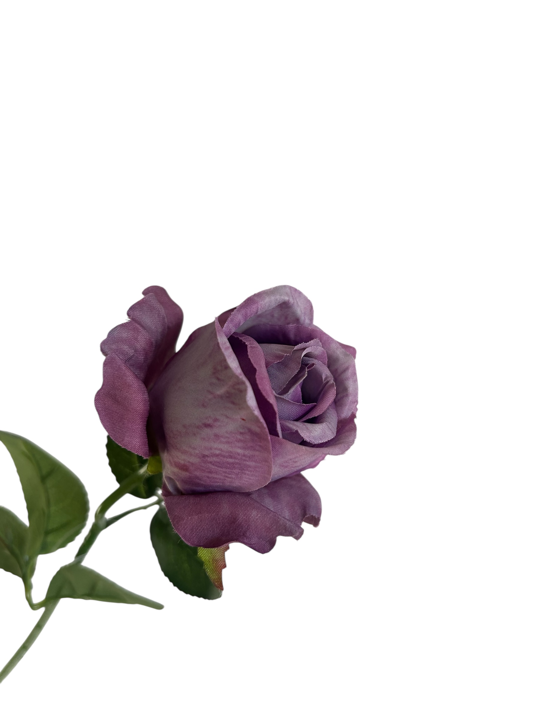 Kwiat wykonany jest z wysokiej jakości materiału, dzięki czemu wygląda bardzo naturalnie i zachowuje swój piękny wygląd przez długi czas. Róża umieszczona jest na długiej, solidnej łodydze z dekoracyjnymi liśćmi, co pozwala łatwo wykorzystać ją w różnych aranżacjach.