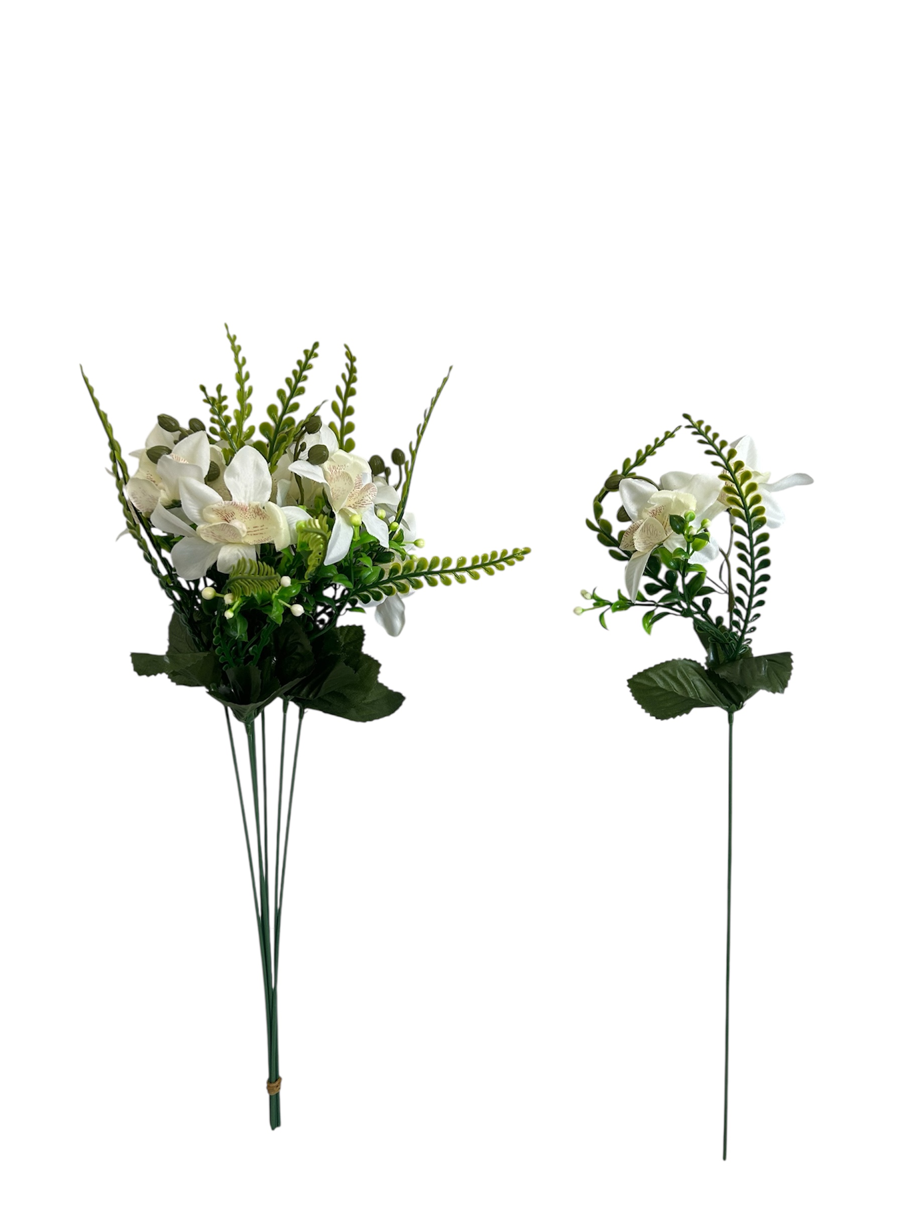 Elegancki storczyk Cymbidium o wysokości 39 cm to wyjątkowa dekoracja, która wniesie do wnętrza świeżość i wyrafinowany charakter. Kompozycja zachwyca intensywnymi, pomarańczowo-czerwonymi kwiatami o naturalnym wyglądzie oraz starannie dobranymi zielonymi dodatkami, które podkreślają jej realistyczny efekt.