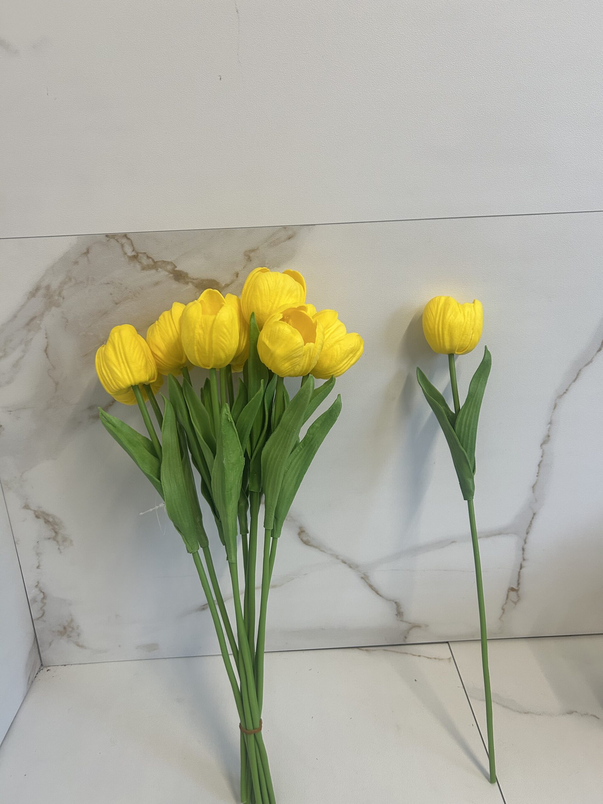Dekoracyjny żółty tulipan piankowy o wysokości 40 cm to doskonały wybór do wiosennych i wielkanocnych aranżacji. Intensywny, słoneczny kolor w połączeniu z naturalnie wyglądającymi liśćmi i łodygą wnosi świeżość i radość do każdej kompozycji. Sprawdzi się w wazonach, stroikach oraz dekoracjach DIY.